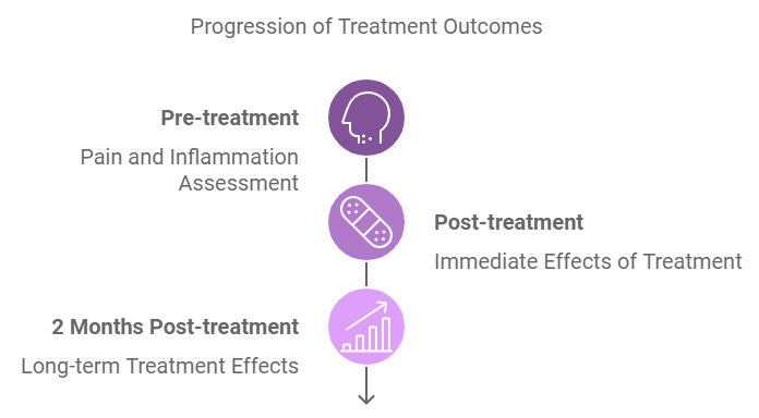 Visual analogue scale was used to assess her pain before and after the treatment. Visual analogue scale (VAS) is one of the pain rating scales. Numerical rating scale is the most commonly used rating scale in VAS where 0 represents no pain and 10 is the worst pain. The RA Factor and C-Reactive Protein before and after the treatment were also recorded.